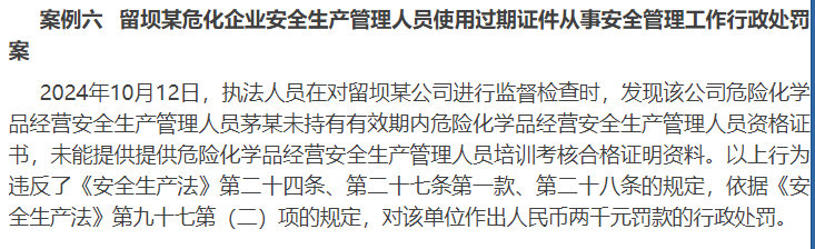 就比如漢中市發(fā)布的《以案警示,安全生產(chǎn)領(lǐng)域8起違法典型案例曝光》里面就講到這個(gè)案例