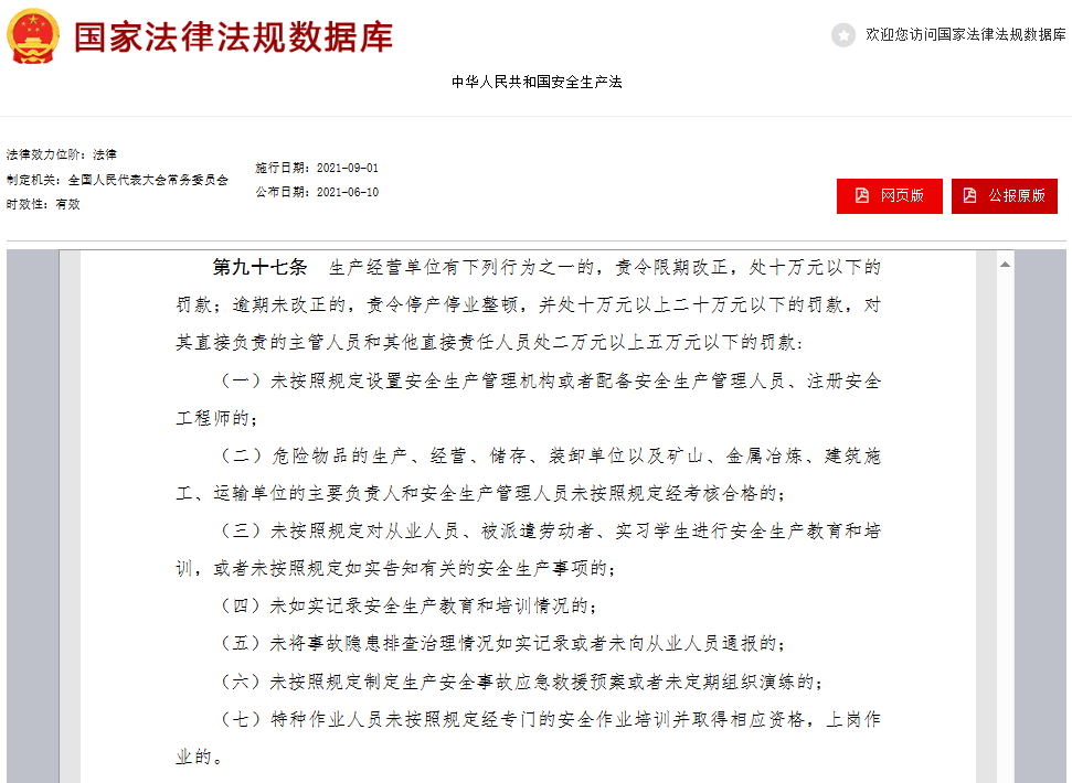 另外有想要詳細(xì)了解處罰信息的,可以參考《安全生產(chǎn)法》第九十七條。