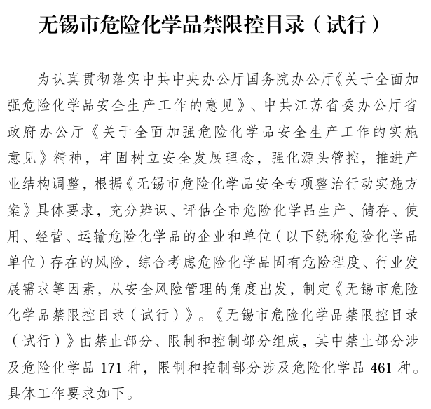 其次各地政策存在些許差異,部分地區(qū)對危化證經(jīng)營范圍有所限制,就比如無錫市發(fā)布的《無錫市危險化學(xué)品禁控目錄(試行)》